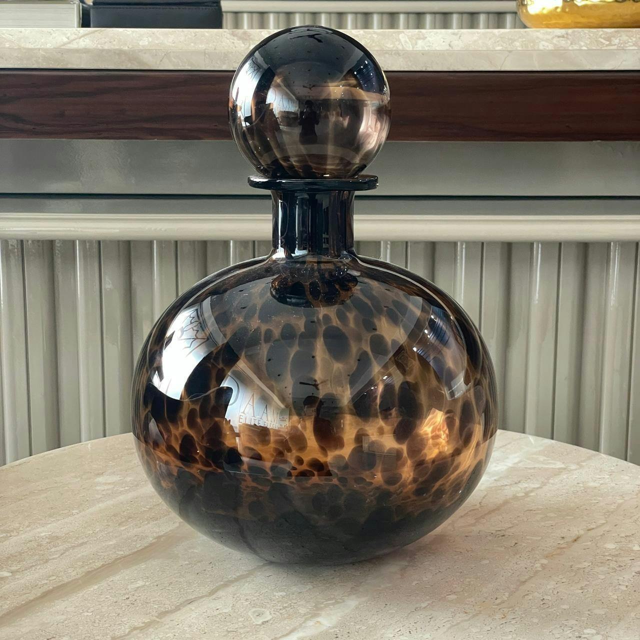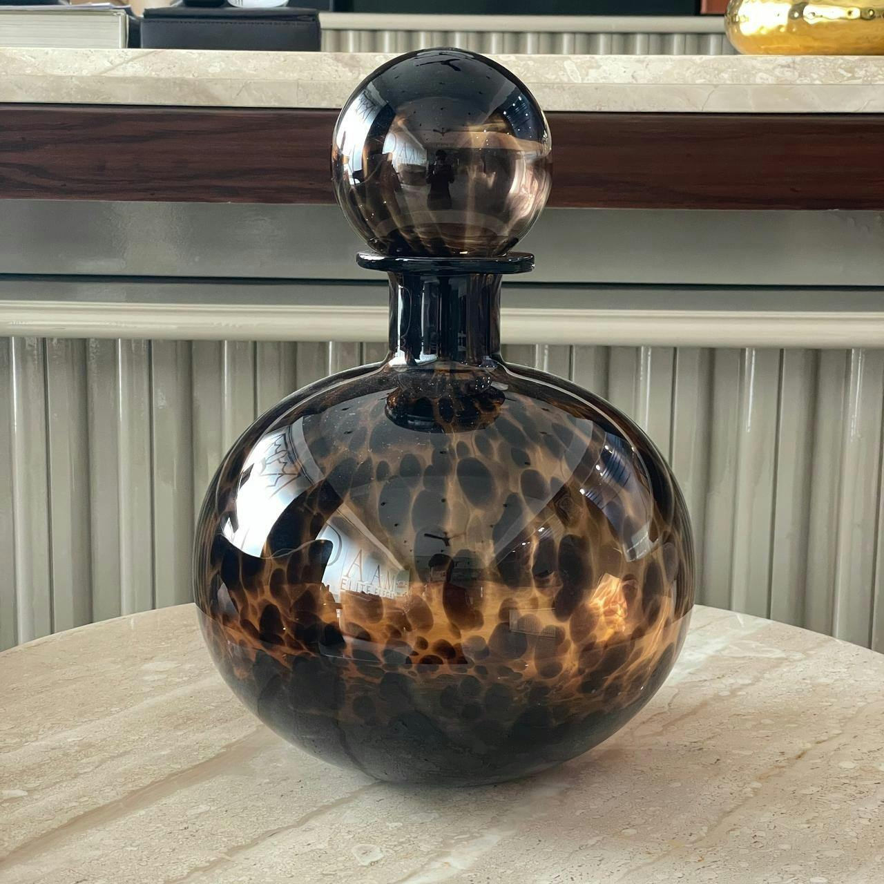The Egyptian Round Vase With Lid is a statement flower vase designed to blend historical elegance with refined functionality. Crafted in premium smoked brown glass, this designer glass flower vase features a beautifully rounded body paired with a matching lid — adding both style and utility. Its lid not only enhances its visual appeal but also makes it a practical decorative piece, perfect for preserving dried botanicals or simply as a covered art object.