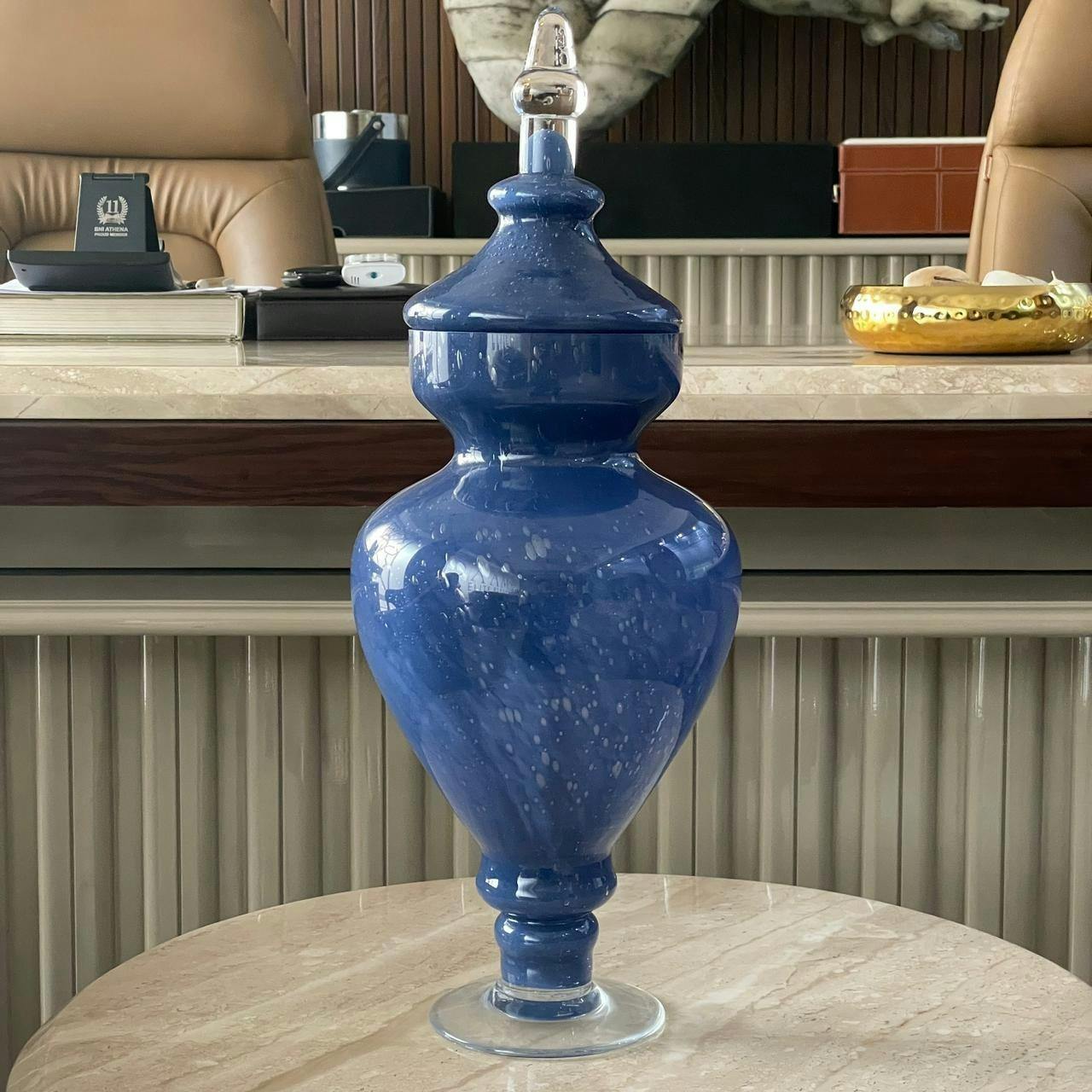 Allure Blue Flower Vase with Lid-Short